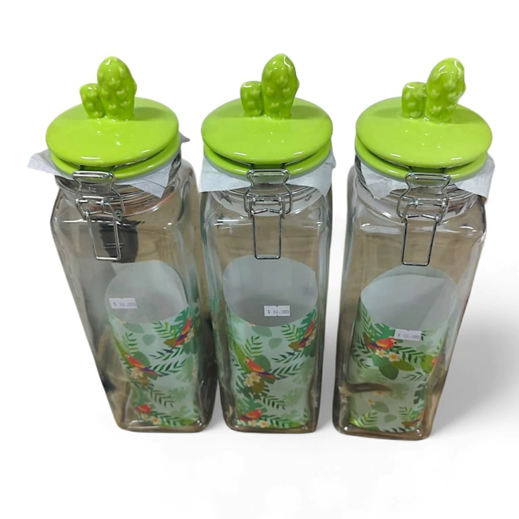 Descubrí la combinación perfecta entre funcionalidad y estilo con este set de 3 frascos herméticos de vidrio grandes, ideales para mantener tus alimentos frescos y organizados en la cocina.