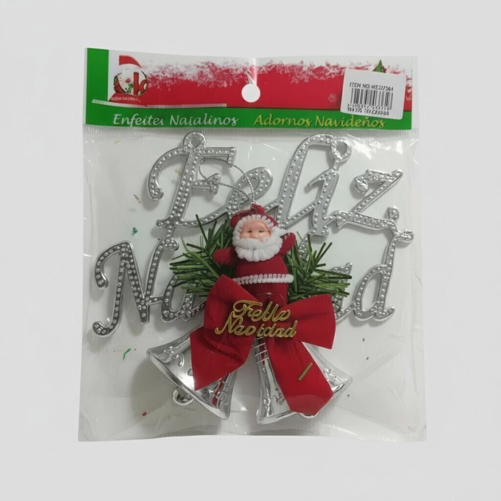 Diseño exclusivo: Incluye la frase “Feliz Navidad”, acompañado de un simpático Santa Claus y delicadas campanitas que añaden movimiento y sonido ligero al colgarlo.