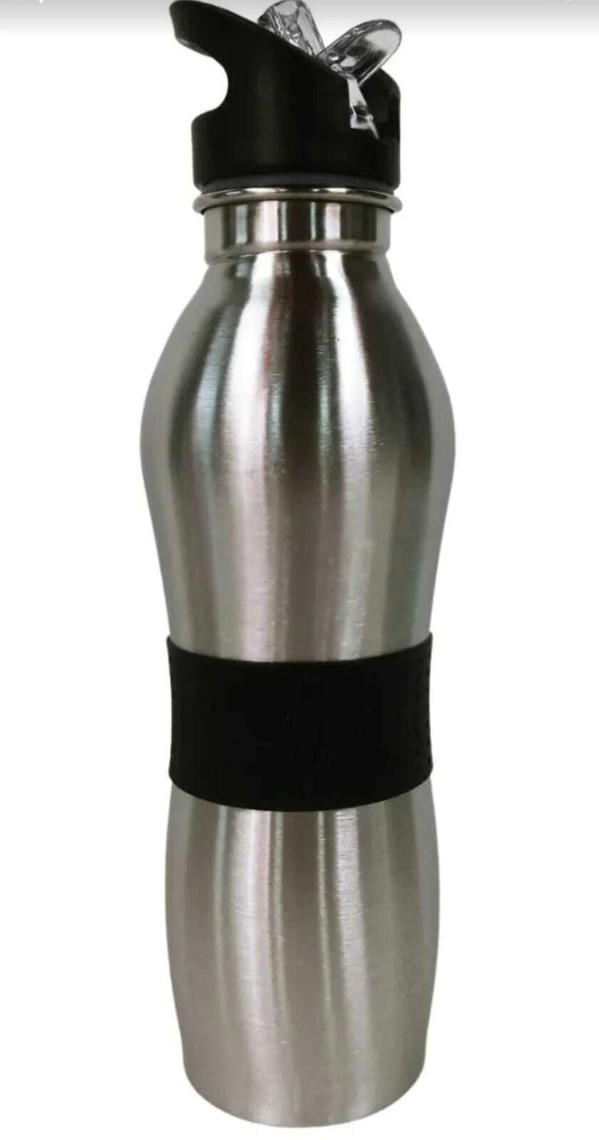 BOTELLA DE ACERO INOXIDABLE POSEE TAPA CON PICO TRANSPARENTE Y MANIJA PARA FACILITAR TRANSPORTE