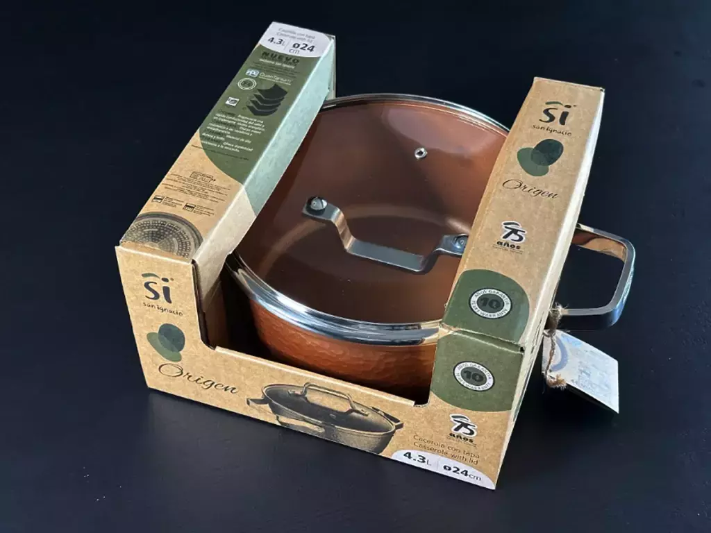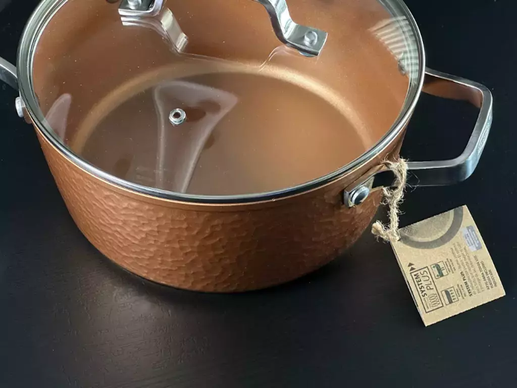 Diseño elegante y gran rendimiento para tu cocina. Esta cacerola de aluminio forjado con acabado cobre es ideal para todo tipo de cocción, incluso inducción.