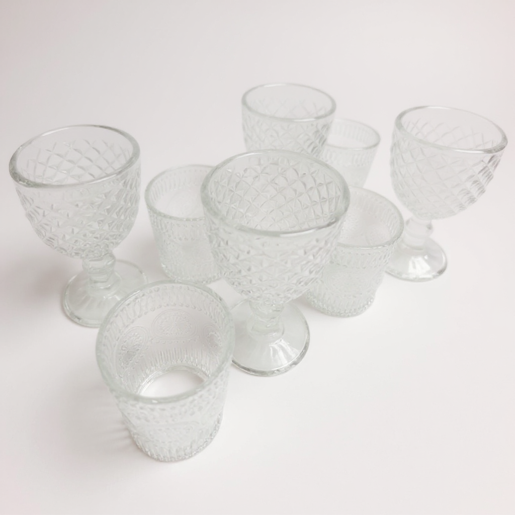 Combo 1 - Set Día de la Madre: 4 Copas + 4 Vasos de Vidrio Labrado