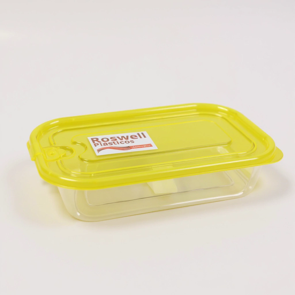 El contenedor rectangular de 600 ml de la marca Roswell es perfecto para guardar y transportar alimentos sólidos o líquidos. Fabricado en plástico resistente, es liviano, hermético y fácil de apilar, ideal para la heladera, el freezer o la vianda diaria.