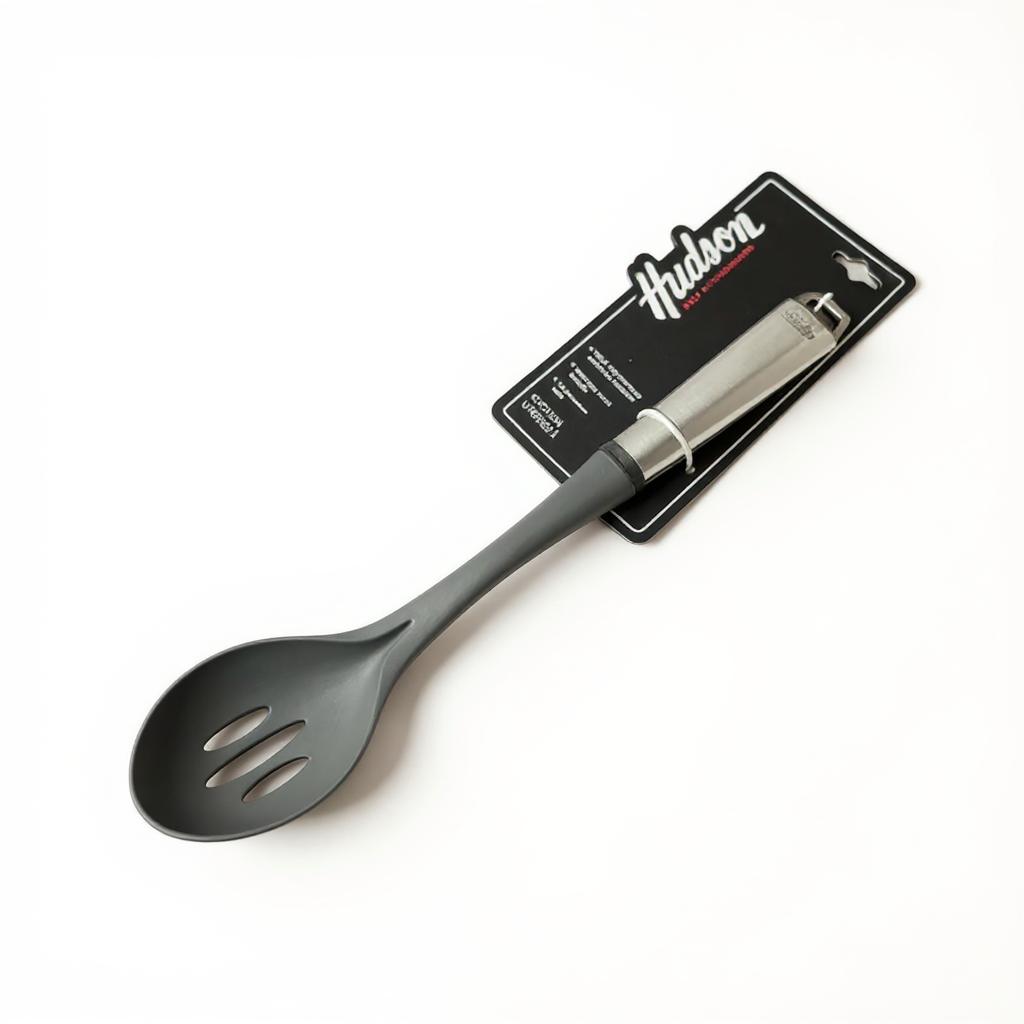 Práctica y resistente, ideal para manipular alimentos en todo tipo de utensilios sin rayarlos. Su diseño calado permite escurrir fácilmente líquidos o aceites.