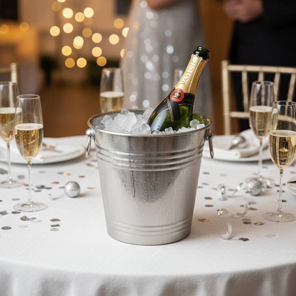 Mantené tus bebidas frías por más tiempo con esta hielera de acero inoxidable, ideal para reuniones, eventos, cenas o uso profesional. Su diseño moderno y brillante aporta un toque de estilo a cualquier mesa, mientras que su material resistente asegura durabilidad y fácil mantenimiento.