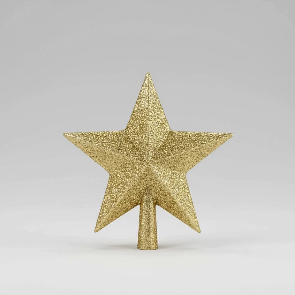Diseño: Estrella de cinco puntas con acabado brillante que refleja la luz de las guirnaldas y realza el árbol.