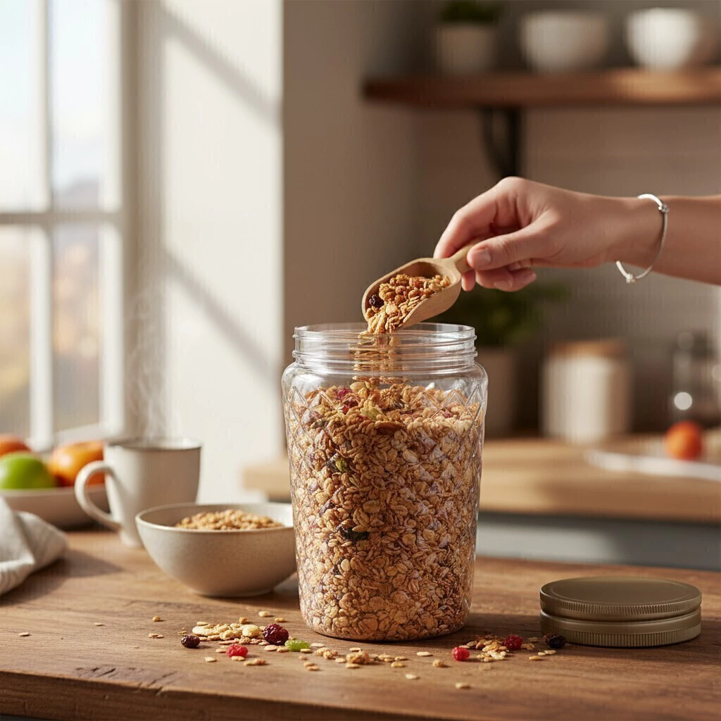 Tarro Plástico Facetado 1.5LTS Tapa Dorada – Elegancia y funcionalidad en tu cocina