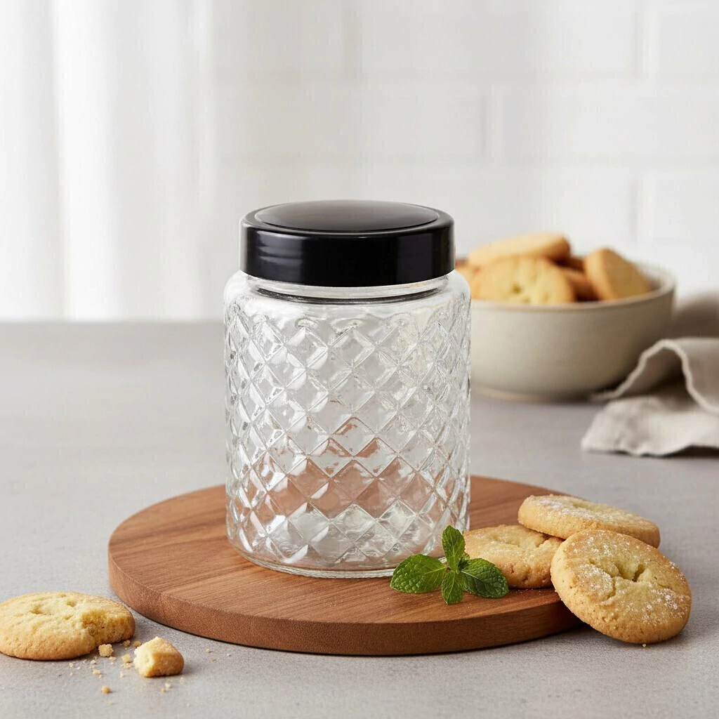 Este tarro es apto para diversas ocasiones, desde la cocina hasta la mesa, aportando un toque de distinción con su diseño facetado. Además, su transparencia permite controlar el contenido sin necesidad de abrirlo.